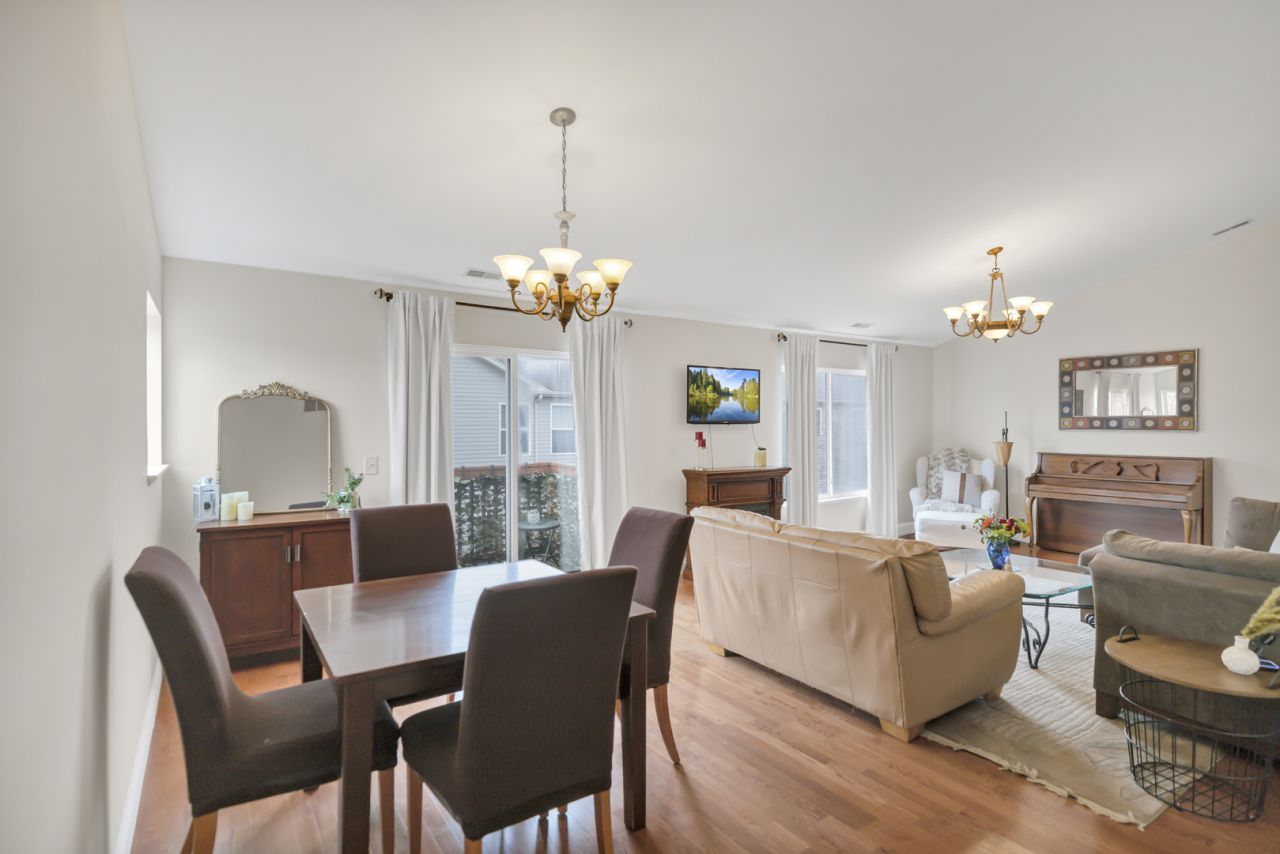 Welcome home to this beautifully updated 3 bedroom, 2 bath condo in the desirable Shenandoah subdivision of Carpentersville. Featuring recently replaced hardwood flooring and fresh paint throughout, this home offers a bright, refreshed feel from the moment you walk in. The open-concept living and dining area is highlighted by a vaulted ceiling and a sliding glass door that leads to your private balcony-perfect for relaxing or entertaining. The kitchen is complemented by a freestanding pantry for extra storage, while a dedicated laundry room with shelving adds everyday convenience. The spacious primary suite is a true retreat, showcasing a cathedral ceiling, walk-in closet with custom shelving, and a private ensuite bath with dual sinks, a garden tub, and a separate shower with newer flooring. Enjoy a fantastic location near Raceway Woods biking and walking trails, Randall Oaks Golf Club and Zoo, plus a variety of dining, entertainment, and everyday conveniences. This home combines style, comfort, and location-don't miss it!