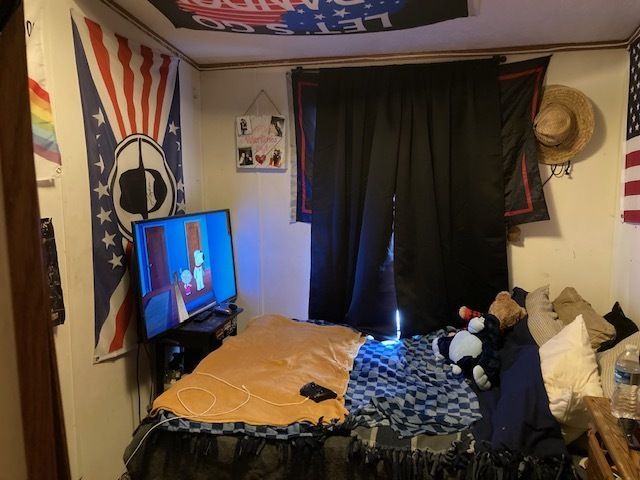 three bedroom, 1 bath mobile home on it's own lot. 2 car detached garage, corner lot, deck, stove & refrigerator stay. cash only